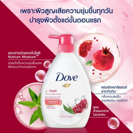 Dove Go Fresh Revive Body Wash combines gentle cleansing with invigorating freshness. Infused with pomegranate and lemon extracts, it revitalizes and energizes your skin while delivering deep hydration. The creamy formula removes dirt and impurities without drying, leaving your skin soft, smooth, and refreshed.