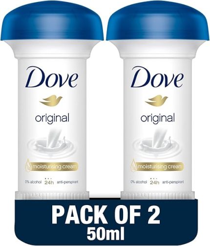 Dove Women Antiperspirant Deodorant Cream, for 24H Protection, Original, Alcohol Free with ¼ Moisturising Cream, 50ml, Pack of 2