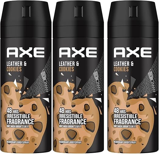 Axe body spray deodorant for long lasting odour protection, leather & cookies, for 48 hours irresistible fragrance, 150.0 milligrams, 3.0 count, 3