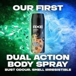 Stay fresh and confident with AXE Collision Leather & Cookies Body Spray. This 150ml aerosol spray delivers 48 hours of odour protection with its dual action zinc formula, ensuring long-lasting freshness. The scent combines the bold richness of leather with the sweet twist of cookies, creating a fragrance that is both daring and unforgettable.