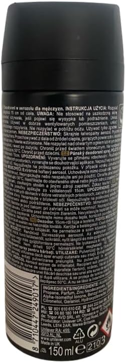 Stay fresh and confident with AXE Vanilla Body Spray for Men. This premium 150ml aerosol deodorant spray delivers an irresistible fragrance that blends rich agarwood notes with smooth vanilla for a masculine and exotic scent that lasts all day. Designed for modern men, the lightweight spray is easy to use and keeps you smelling confident, whether at work, the gym, or a night out.