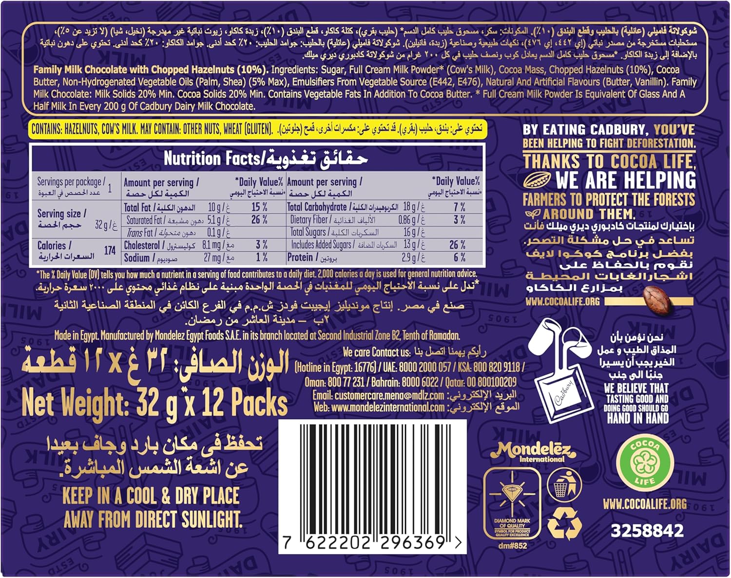 Cadbury Dairy Milk Hazelnut Chocolate Bar 32Gx12