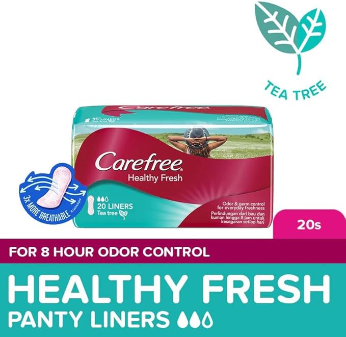Carefree Healthy Fresh Tea Tree Panty Liners – Up to 8-hour Odor and Germ Control – Cottony Soft Cover – Breathable Backing – 20 Liners