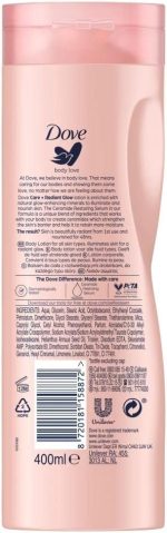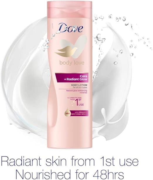 Dove Body Love Care Lotion, for glowing and radiant skin, Care + Radiant Glow, with Ceramide Restoring Serum and natural glow enhancing minerals, 427822, 446.0 grams, 400.0 milliliters, 1.0 count, 1