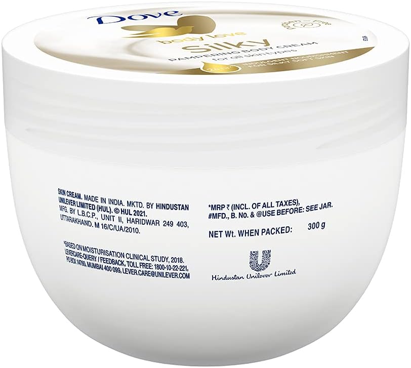 Dove Body Love Silky Pampering Body Cream For All Skin Types Paraben Free, 24hrs Moisturisation With Plant based Moisturiser Silky Soft Skin 300g, 300 g (Pack of 1)