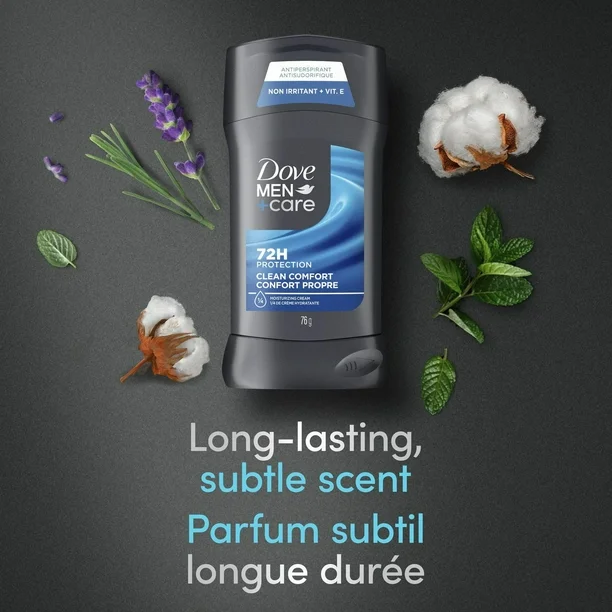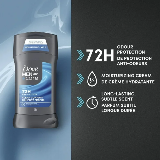 Dove Men+Care Clean Comfort Antiperspirant Stick – 72-Hour Sweat and Odor Protection