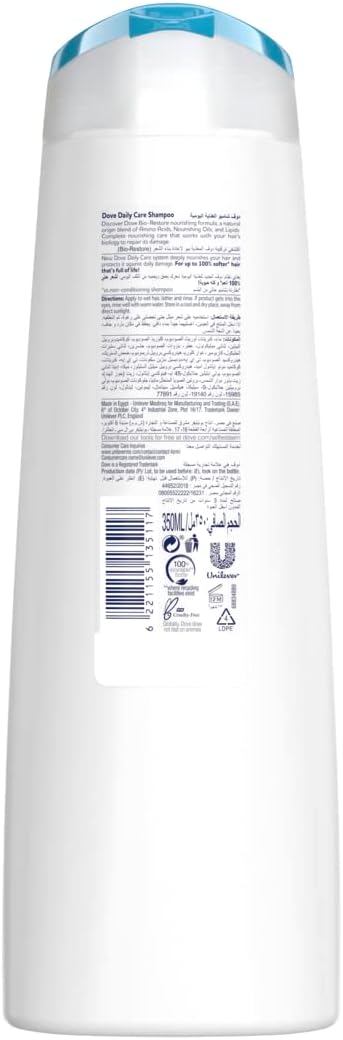 Dove Daily Care Shampoo is specially formulated to nourish and protect hair from daily damage while keeping it soft and manageable. Enriched with Dove’s Bio-Restore formula, a natural-origin blend of Amino Acids, Nourishing Oils, and Lipids, it works with your hair’s biology to repair damage from within. This shampoo delivers up to 100% softer, healthier-looking hair, improves detangling, and enhances manageability. For best results, pair it with Dove Daily Care Conditioner for complete hair nourishment and care.