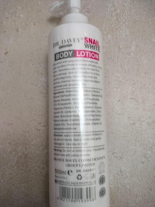 Tags: DR.DAVEY Snail White, DR.DAVEY Snail White SPF90 Moisturizing Whitening Lightening, DR.DAVEY Snail White SPF90 Moisturizing Whitening Lightening Body, DR.DAVEY Snail White SPF90 Moisturizing Whitening Lightening Body Lotion, DR.DAVEY Snail White SPF90 Moisturizing Whitening Lightening Body Lotion - 500ml