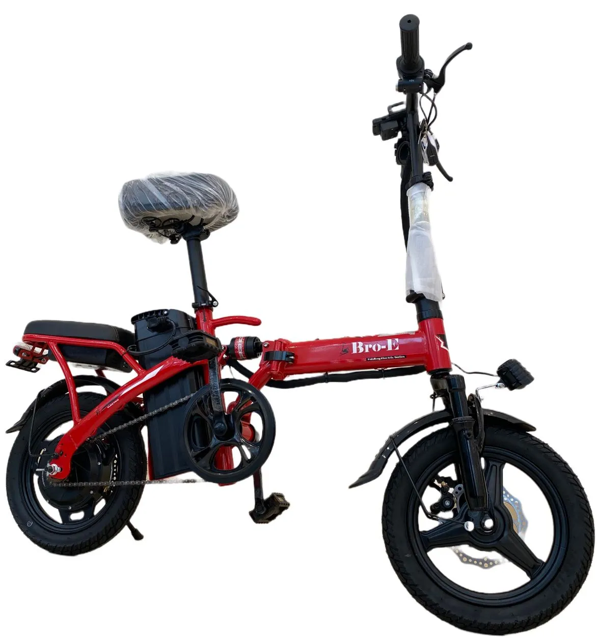 The E-Bike KQ04 offers powerful performance with its 450W motor and 48V 15Ah LT battery, reaching speeds of 42 km/h and a range of 37 km. With 14-inch tires and a durable aluminum ring, it ensures stability and reliability. The 180 kg max load capacity and 32 kg weight make it a robust option for any rider.