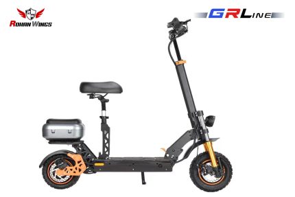 The GRL-S6 delivers extraordinary power and speed, featuring dual 2500W motors and a 48V 23Ah LT battery. Capable of reaching 64 km/h, it offers a range of 45 km (or 29 km with higher load). This robust e-bike supports up to 180 kg and is equipped with 11.5-inch off-road/city tires, making it perfect for a variety of terrains.