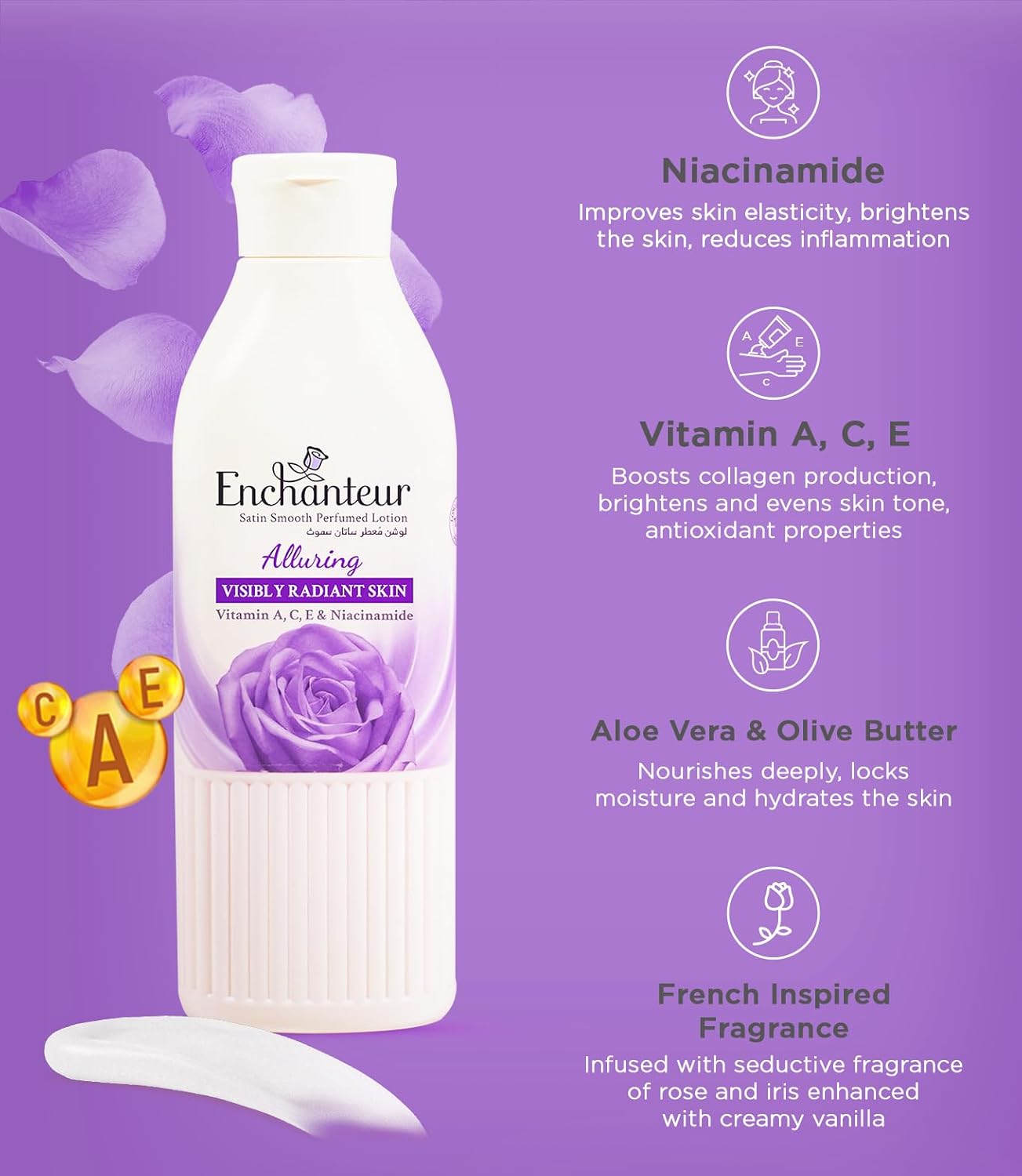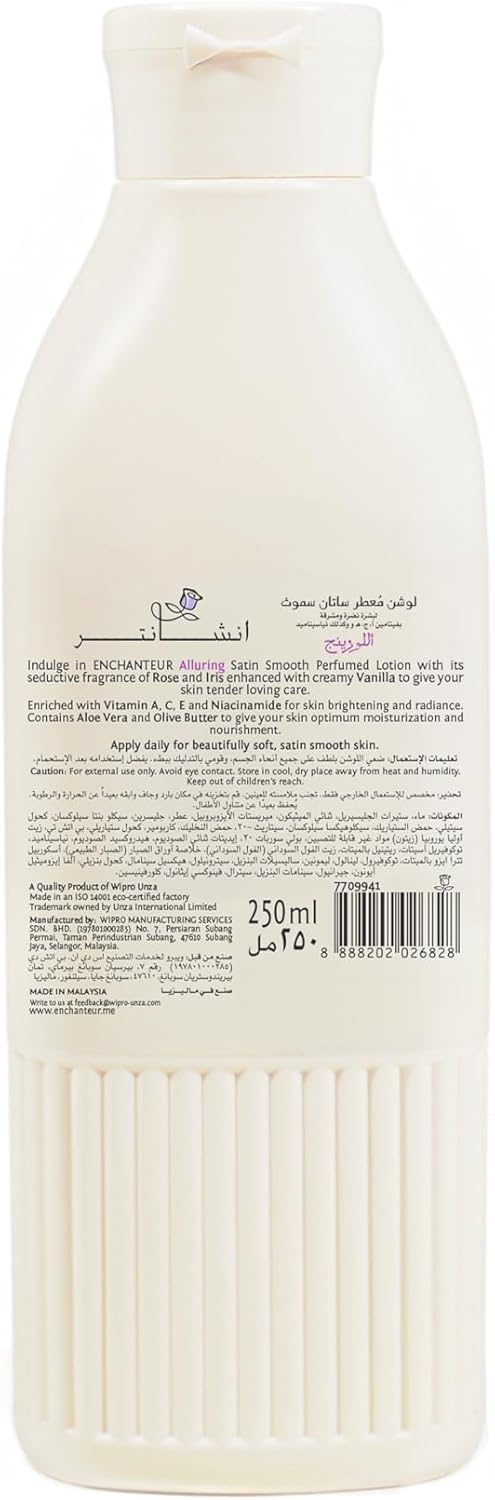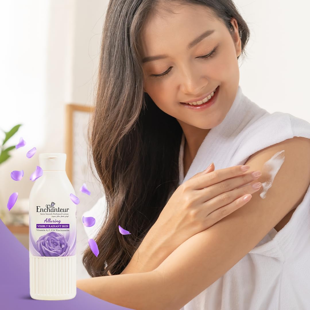 Enchanteur Satin Smooth Perfumed Lotion – Alluring | Enriched with Vitamins, Niacinamide, Aloe Vera & Olive Butter | For Silky Smooth & Visibly Radiant Skin | All Skin Types, 750 ml