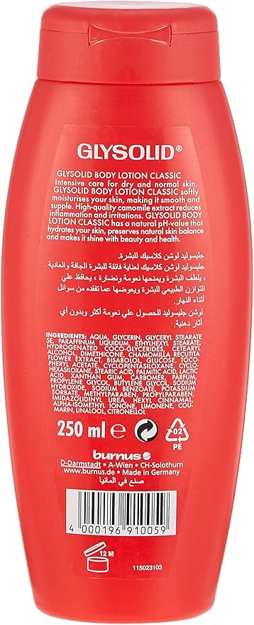 Glysolid Skin Cream 250ml is a rich moisturizing formula designed to deeply hydrate and protect the skin. Suitable for all skin types, it helps restore softness while improving overall skin texture.