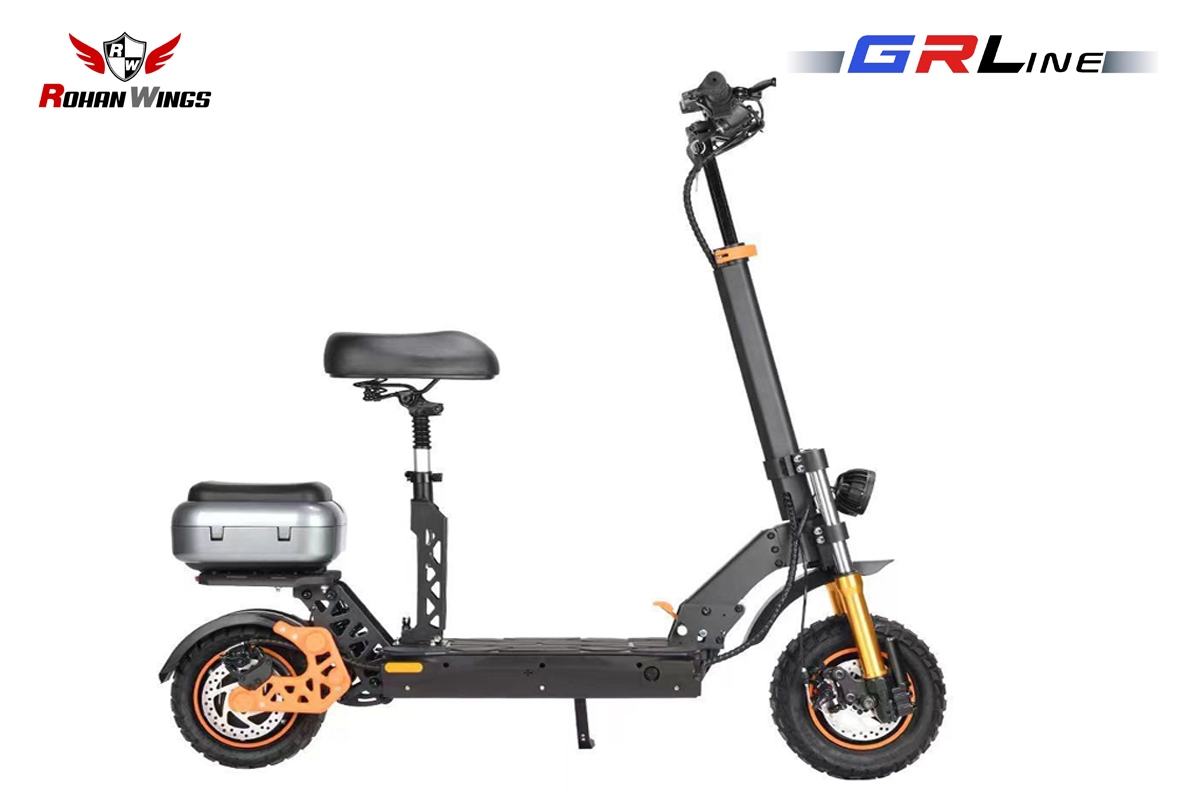 The GRL-S1 offers high performance with a 1900W/500W motor and a 48V 13Ah LT battery. It reaches speeds of 46 km/h and provides a 29 km range. With 10.5-inch off-road/city tires and a full light system, it ensures a safe and powerful ride on any terrain.