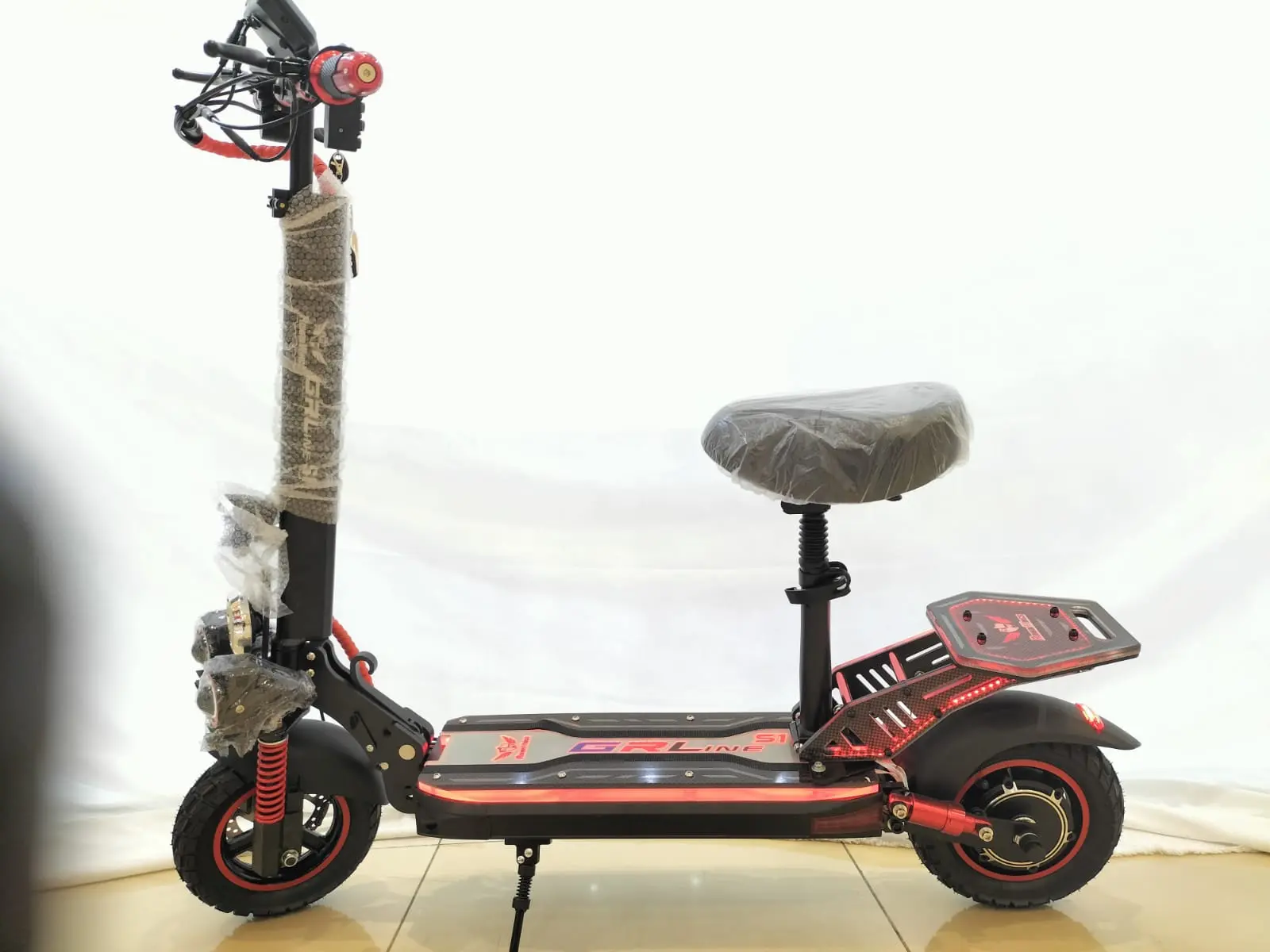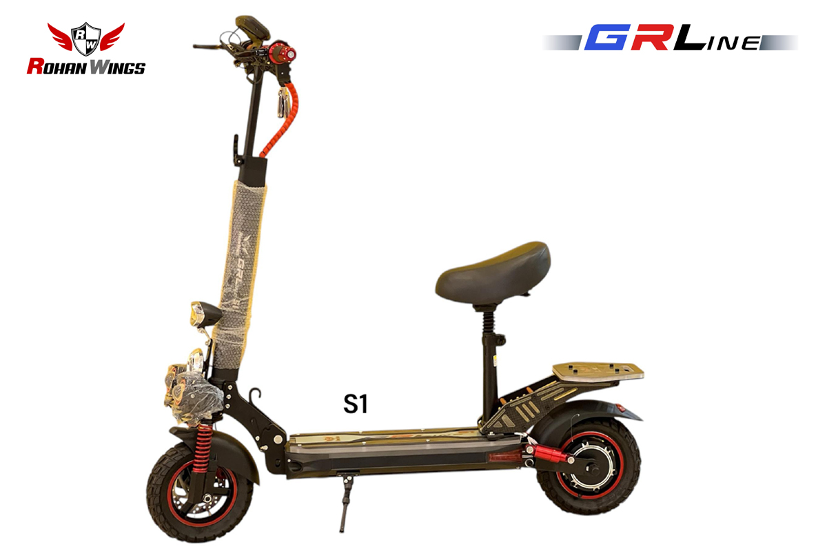 The GRL-S1 offers high performance with a 1900W/500W motor and a 48V 13Ah LT battery. It reaches speeds of 46 km/h and provides a 29 km range. With 10.5-inch off-road/city tires and a full light system, it ensures a safe and powerful ride on any terrain.
