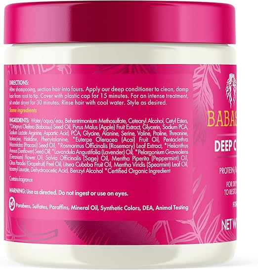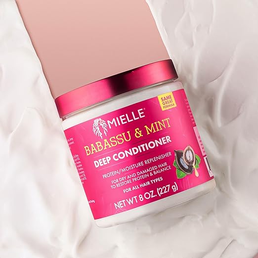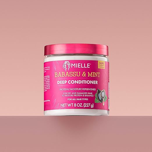 Mielle Organics Babassu & Mint Deep Conditioner with Protein combines natural oils and pure South American babassu for a nutrient-rich formula that restores and protects hair. Enriched with healthy fatty acids, amino acids from wheat and soy, and botanical ingredients, it penetrates deeply to nourish the scalp and follicles while softening and strengthening hair.