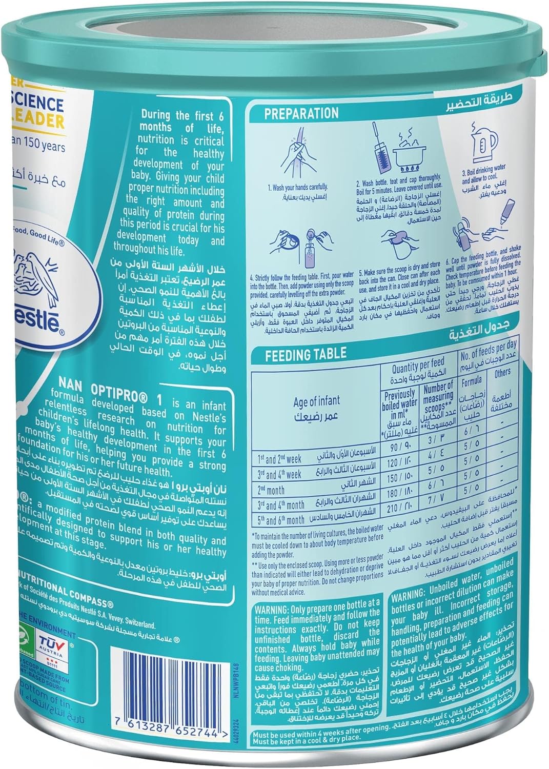 NAN OPTIPRO 1 is a baby formula for newborns up to 6 months, used when breastfeeding is not possible.