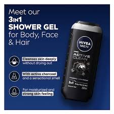 Experience complete freshness with NIVEA Men Active Clean 3-in-1 Shower Gel, specially designed for men’s hair, face, and body. Enriched with active charcoal, it deeply cleanses and removes dirt, oil, and impurities, leaving skin and hair feeling clean, energized, and refreshed. Perfect for daily use, it offers the convenience of an all-in-one grooming solution.