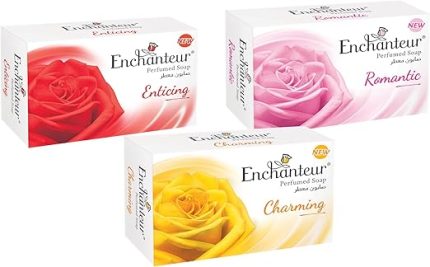 ✅ Benefits: Cleanses, Refreshes, Moisturizes, Leaves Skin Scented Indulge in luxurious care with Enchanteur Perfumed Soap Enticing. This 125gm pink soap bar is infused with a long-lasting floral fragrance that blends roses, muguet, and fresh citrus notes, leaving your skin delicately scented and refreshed. Its creamy, gentle lather cleanses effectively while keeping your skin soft, smooth, and hydrated. Perfect for daily use, this soap adds a touch of elegance to your bathing routine, making you feel pampered every day.