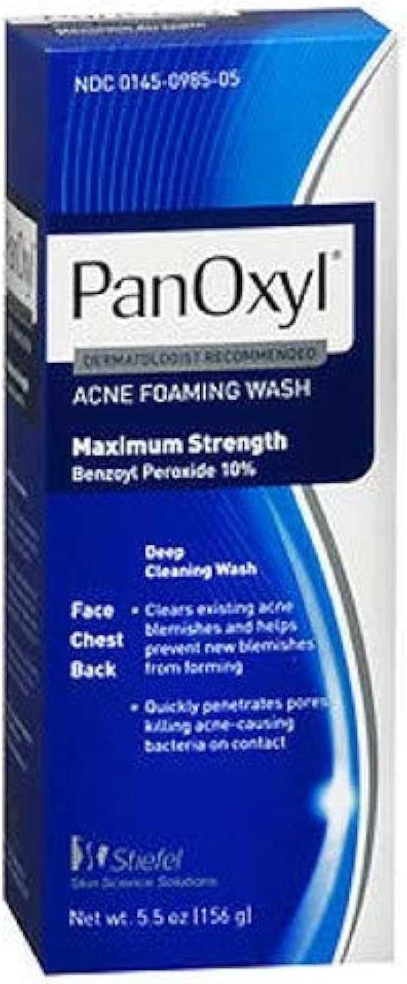 PanOxyl Acne Foaming Wash Benzoyl Peroxide 10% Maximum Strength Antimicrobial, 5.5 Oz, Package may vary