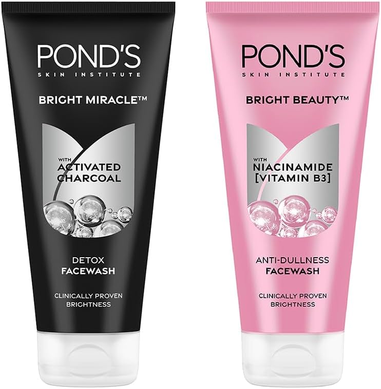 Ponds Bright Beauty Anti-Dullness Facewash with Vitamin B3, 200gm + Ponds Bright Miracle Detox Facewash with 10X Power of Charcoal, 200gm