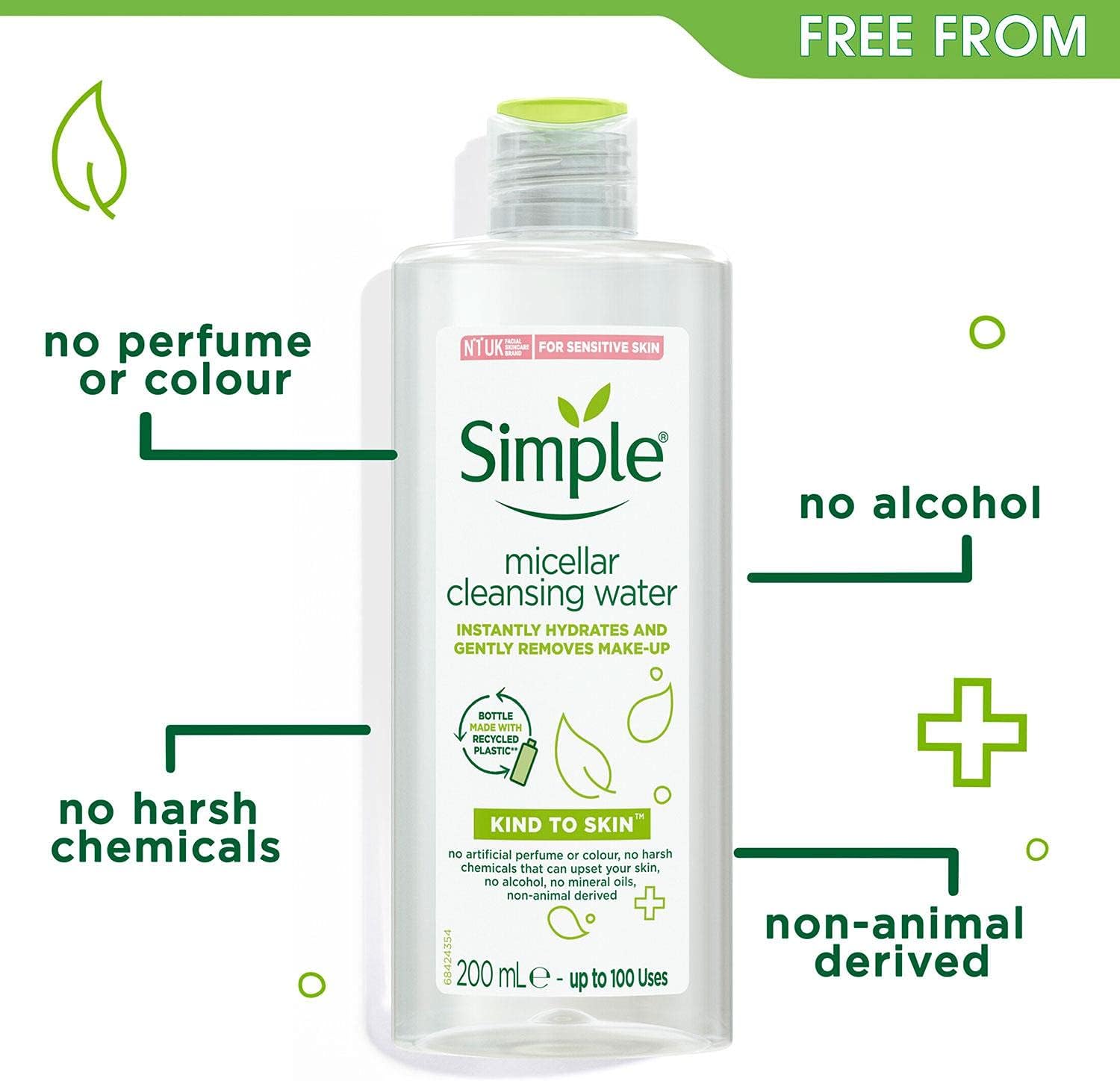 Discover the gentle yet powerful cleansing action of Simple Micellar Cleansing Water—formulated to purify your skin without irritation. This no-rinse formula effortlessly sweeps away makeup, dirt, and impurities while helping to unclog pores, leaving your skin feeling clean, refreshed, and hydrated.