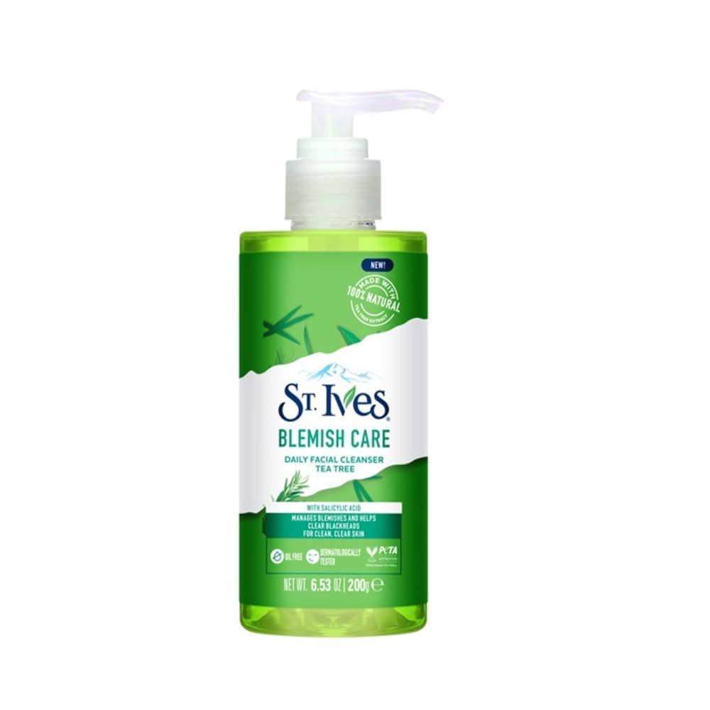 St. Ives Blemish Care Face Wash With 100% Natural Tea Tree Extracts & Salicylic Acid| Unclogs Pores and Removes Impurities, Dirt & Oil| Dermatologically Tested| Soap-Free & Paraben-Free| 200ml