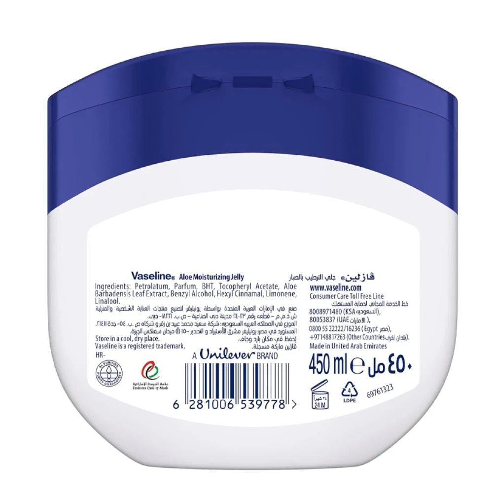 This large 450ml jar is perfect for long-term family use, offering complete skincare that can be used on dry skin, chapped lips, cracked heels, and even minor cuts. Dermatologist-tested and safe for all skin types, Vaseline Aloe Vera Jelly is a versatile solution for daily moisturizing and skin protection.