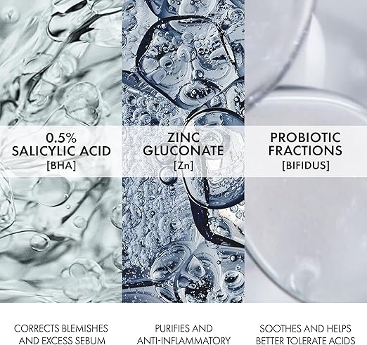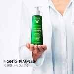 VICHY cleanser effectively removes dirt and pollution, eliminating 91% after the first wash and reducing excess sebum by 94%. With continued use, 83% of skin texture appears refined, and 98% of marks from imperfections are visibly diminished after four weeks. The formula purifies the skin without causing dryness and is hypoallergenic, making it suitable for sensitive skin.